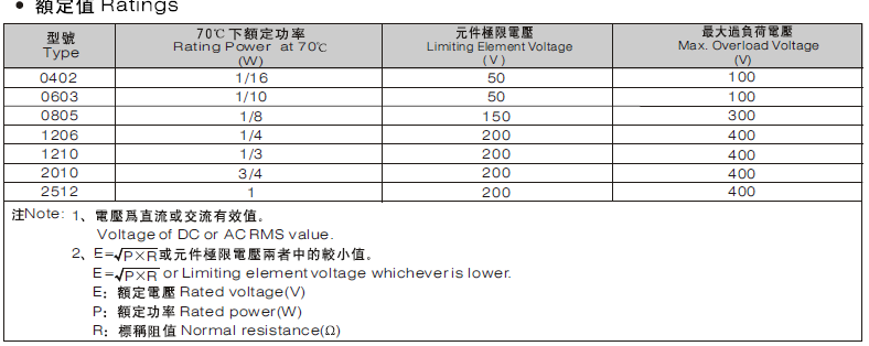 額定/性能